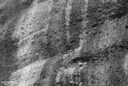 Selbstverständlich lassen sich die Aufnahmen auch anderen Kategorien zuordnen, so wie die drei Fotos vom Gestein, das von Wasser überrieselt und dabei von tiefliegenden Wolken verschleiert wird. Nagelfluh nennt sich dies in der Schweiz, denn die runden Kiesel stechen aus dem harten Gestein wie die Köpfe von Nägeln hervor.